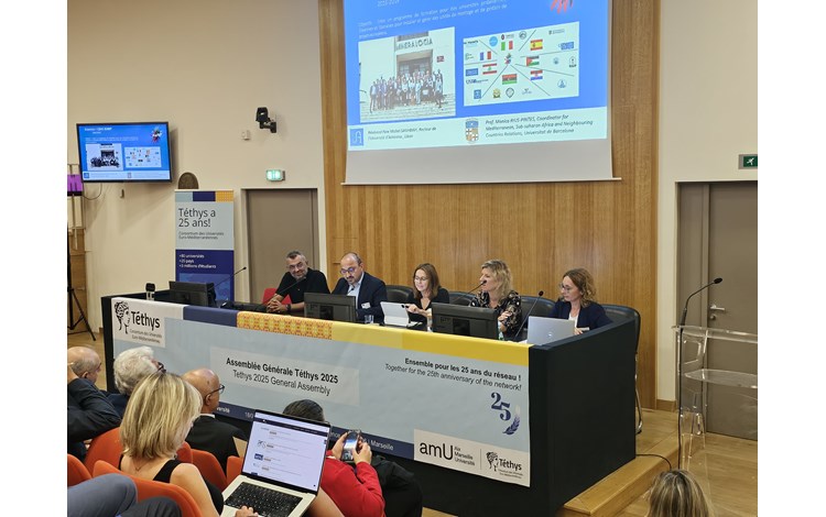 Participation de l’Université de Tunis El Manar à l’Assemblée Générale du réseau TÉTHYS qui s'est tenue du 18 au 20 juin 2025 à Aix-Marseille Université : l’Université de Tunis El Manar a été représentée par son Président, Prof. Moez Chafra et la Coordinatrice scientifique du projet WE4LEAD, Mme Halima Ouanada. L’événement a rassemblé 120 participants provenant de 22 universités réparties dans 11 pays. L’édition de cette année a mis en lumière l’impact croissant du réseau Téthys, qui regroupe 87 universités membres de 21 pays méditerranéens. Les échanges ont porté sur des priorités communes telles que l’égalité des genres et l’adaptation au changement climatique, avec une conférence du paléoclimatologue Joël Guiot, Fondateur de MedECC et Co-président de GREC-SUD…