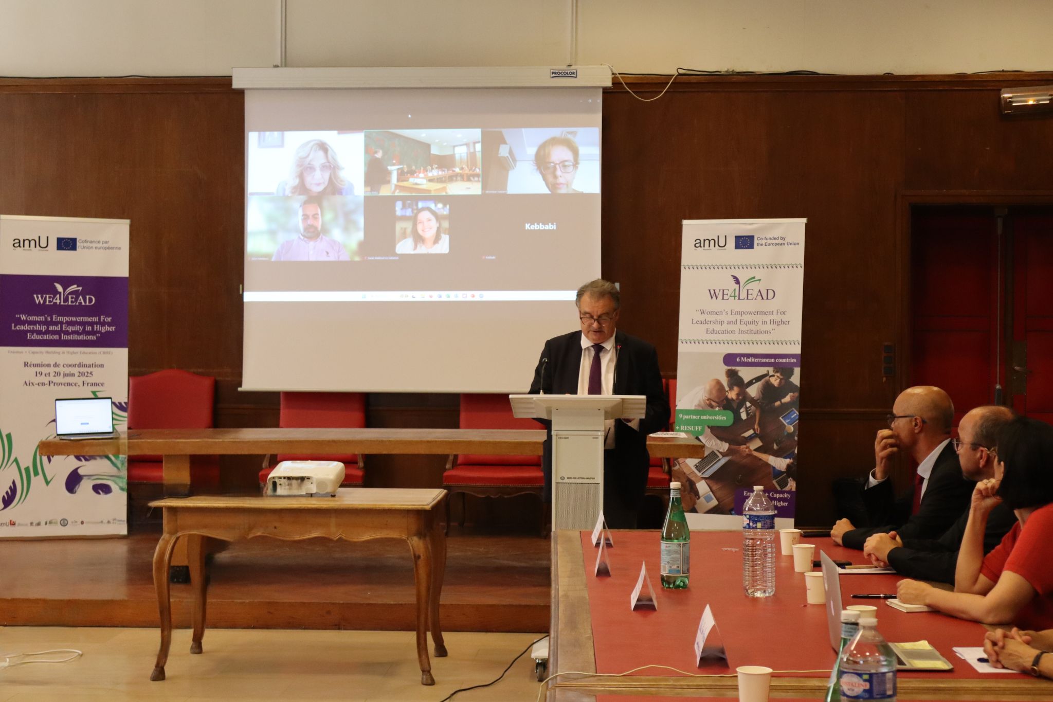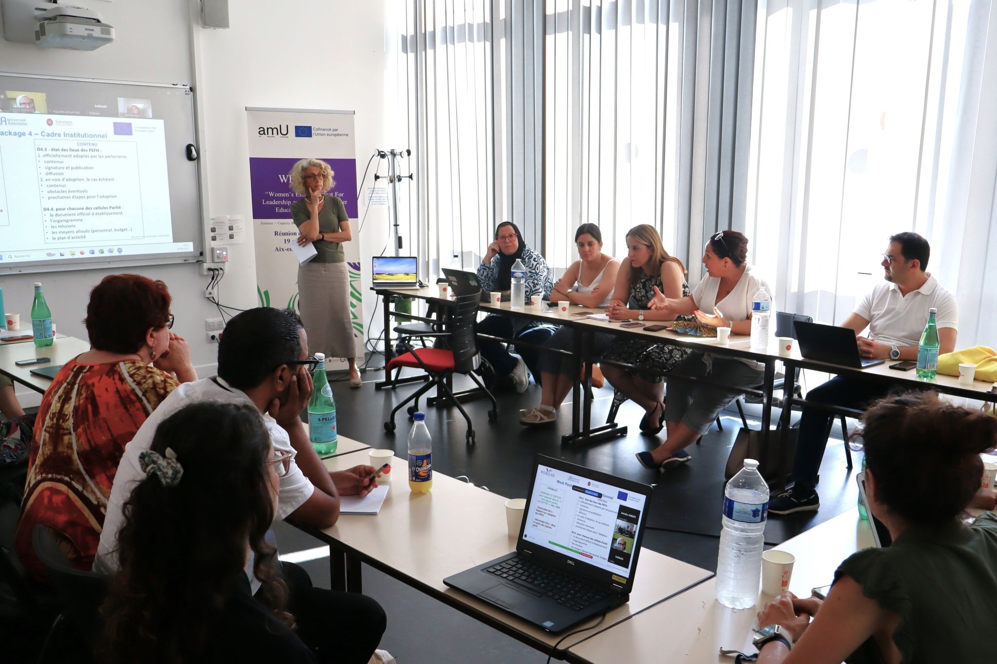 - La réunion de coordination WE4LEAD a débuté par un moment exceptionnel qui est la réunion des Présidents des universités partenaires du consortium. Le président de l’Université de Tunis El Manar (UTM), Prof. Moez Chafra, y a pris la parole en premier pour exprimer sa volonté de porter les propositions du projet auprès des 13 universités publiques tunisiennes et d’y promouvoir la création de cellules parité, en commençant par l’UTM. A cette réunion de coordination tenue à Aix-en-Provence, ont pris part une quinzaine de partenaires académiques et administratifs en plus d’une dizaine d'autres à distance.